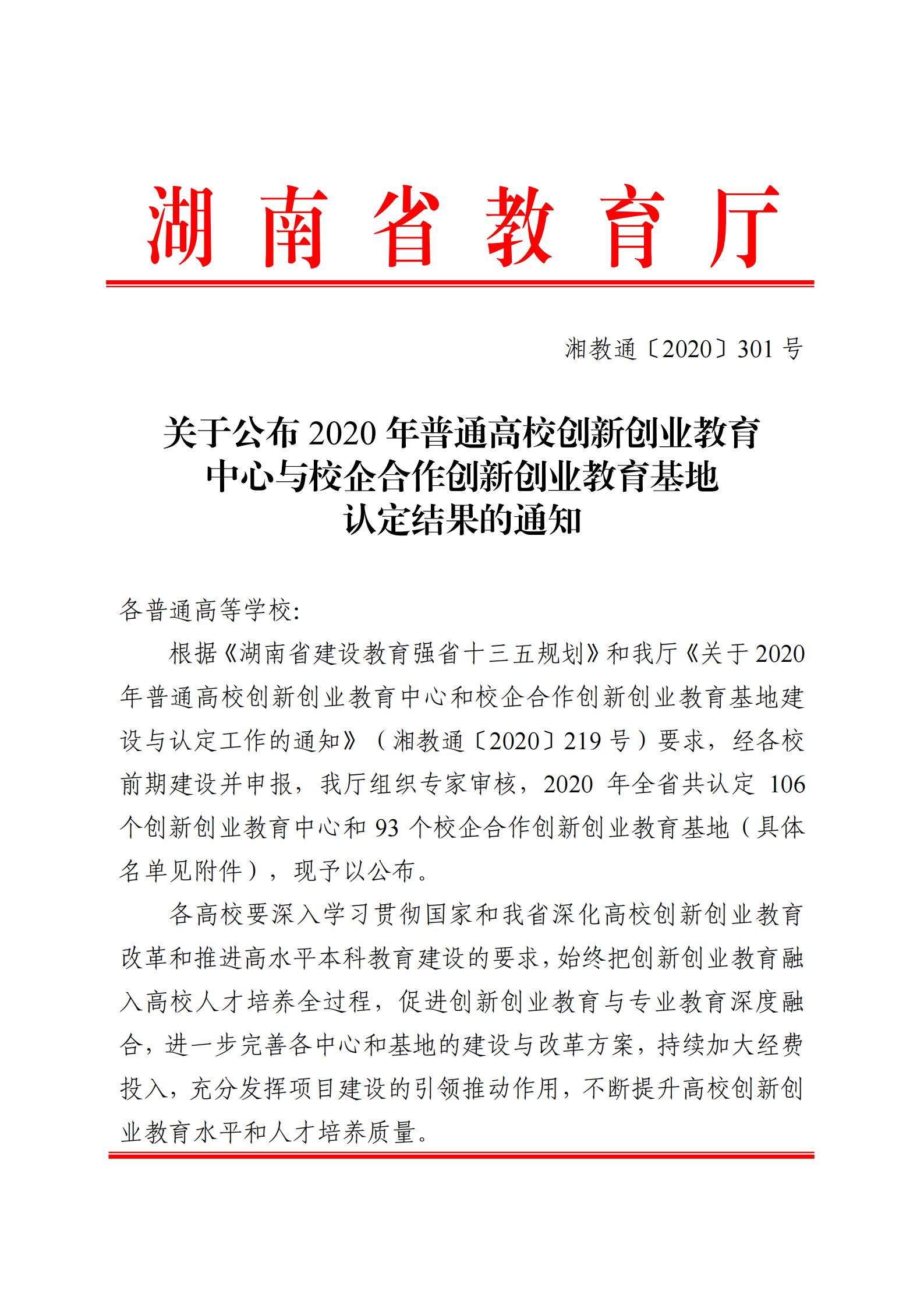 您所在位置: 首页> 旗下产业> 实践教学 聂志军老师负责的“文科师范类专业创新创业教育基地”认定为湖南省2020年普通高校校企合作创新创业教育基地 时间:2021-04-30 09:12:00 访问量: 中国·太阳成集团(tyc122cc)-suncitygroup