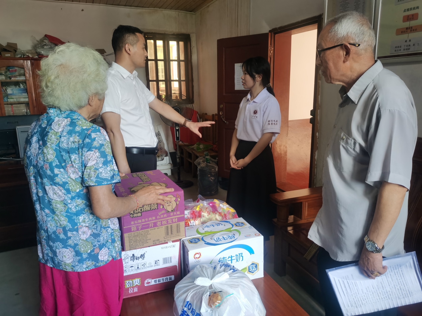 除此之外,石羊塘镇镇长杨溢代表政府给志愿者送来慰问品并询问志愿者们的食宿情况及团队工作进展,他强调,“大家放心教学,石羊塘镇政府一定会尽最大的努力支持志愿者的工作。”