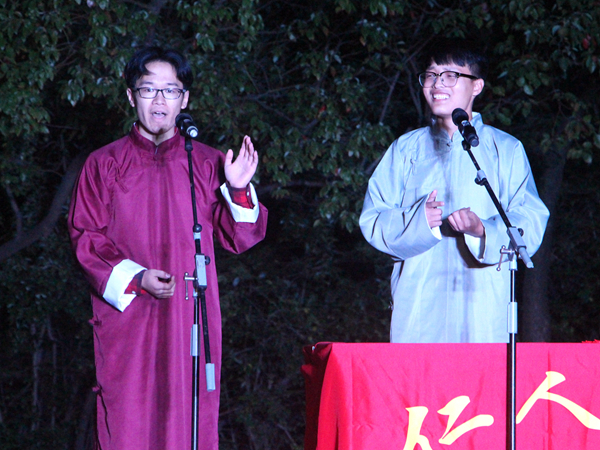 10月11日晚,由公司社联部、语言艺术部联合举办的2018级军训慰问演出在全院新生殷切期待中于北校旧篮球场正式开始,晚会由靳江北、许昕悦主持。18级辅导员何舒香及全体教官、新生到场观看演出。