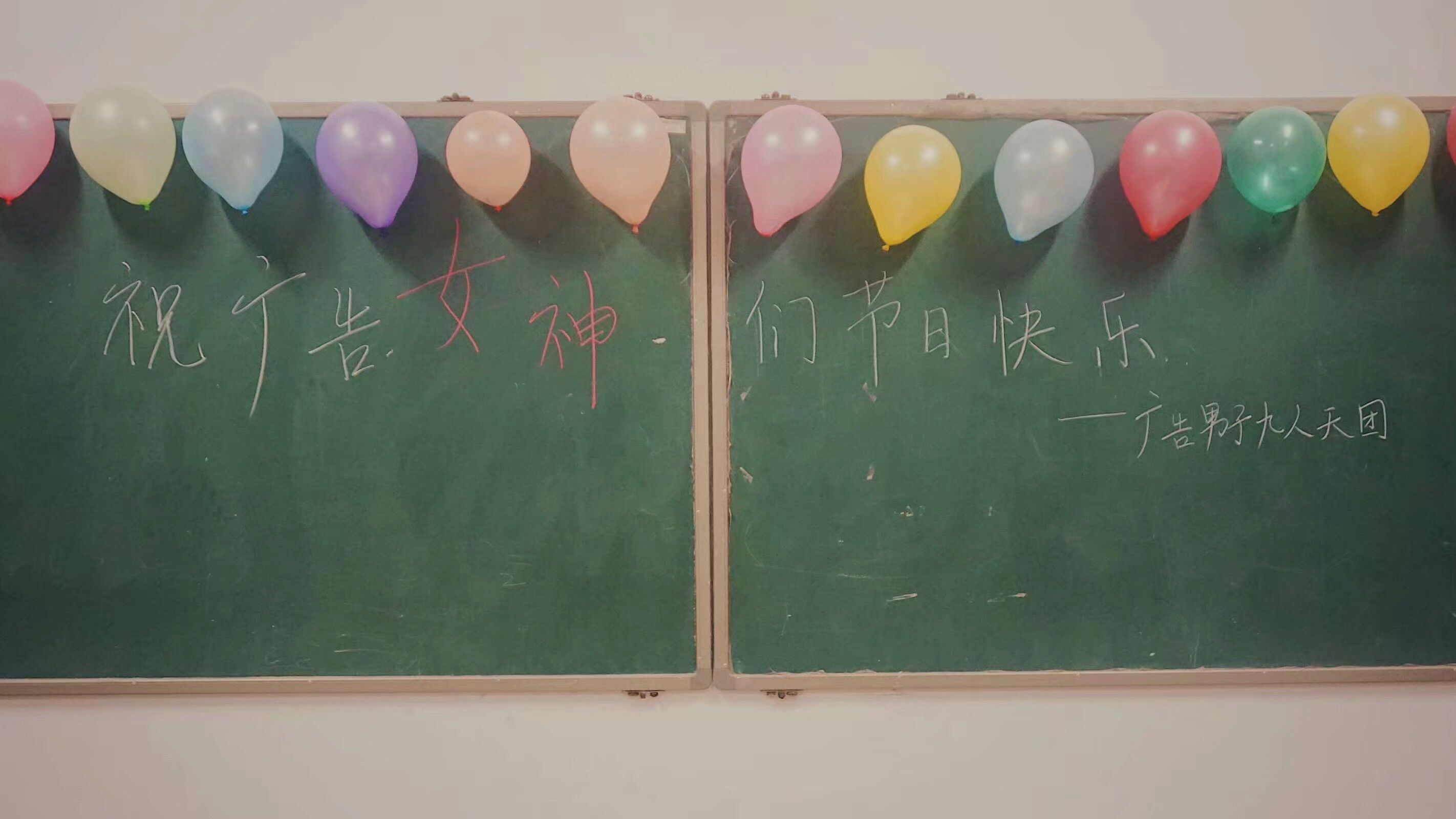 公司18级广告专业的男生早早就等在女生宿舍门口,天还有点黑蒙蒙的,但挂在树两旁的横幅却能让脑子立刻从混沌到清醒。“御江湖,千秋万代。论女神,广告不败。”男生们站在横幅前面成两排,为今天节日的主角精心准备了早餐,还细心的把牛奶也热好了,为这个还不算太温暖的初春添上几分明媚。