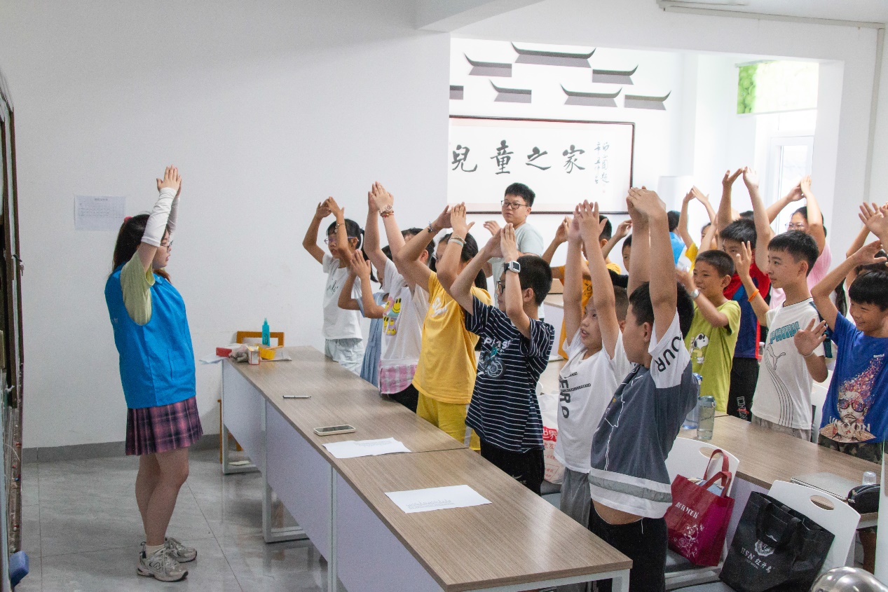 单手举起再落下、绕圈再落下,同学们通过对一个动作又一个动作的反复练习,手势逐渐整齐流畅。在志愿者的引导下,同学们进行了一次集体的手语表演,充满感情的歌声和流畅的手势交相辉映,整个课堂都洋溢着满满的爱。“这里的孩子都很感谢夏爷爷,通过这堂课,想让孩子们明白,现在教育条件的改善离不开那些在背后默默付出的人,要常怀感恩之心。”志愿者屈芷骞说道。