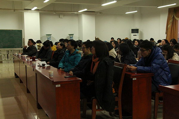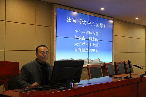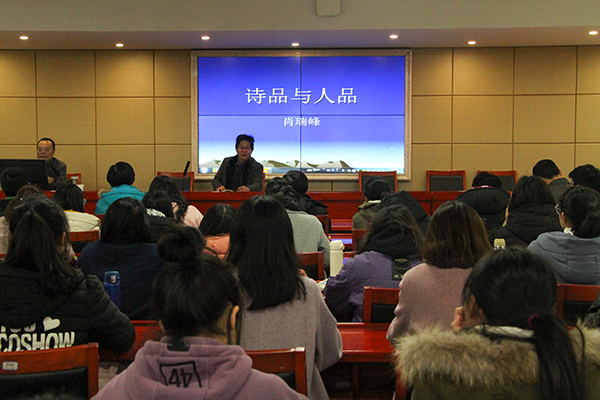 11月28日下午,浙江工业大学肖瑞峰教授应邀于立言楼B4-1会议室举办了以“诗品与人品”为主题的学术讲座。此次讲座由公司王友胜教授主持,李鸿渊、丁志丛、王奕祯、余霞、何湘等老师及17级汉语言文学专业的部分硕士研究生和本科生约120人到场学习聆听。